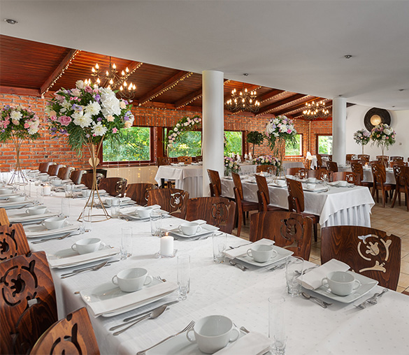 Nasze sale mogą pomieścić od 20 do 80 osób, w zależności od formuły przyjęcia. Dla mniejszych grup oferujemy kameralniejsze przestrzenie, dla większych – przestronne sale bankietowe.